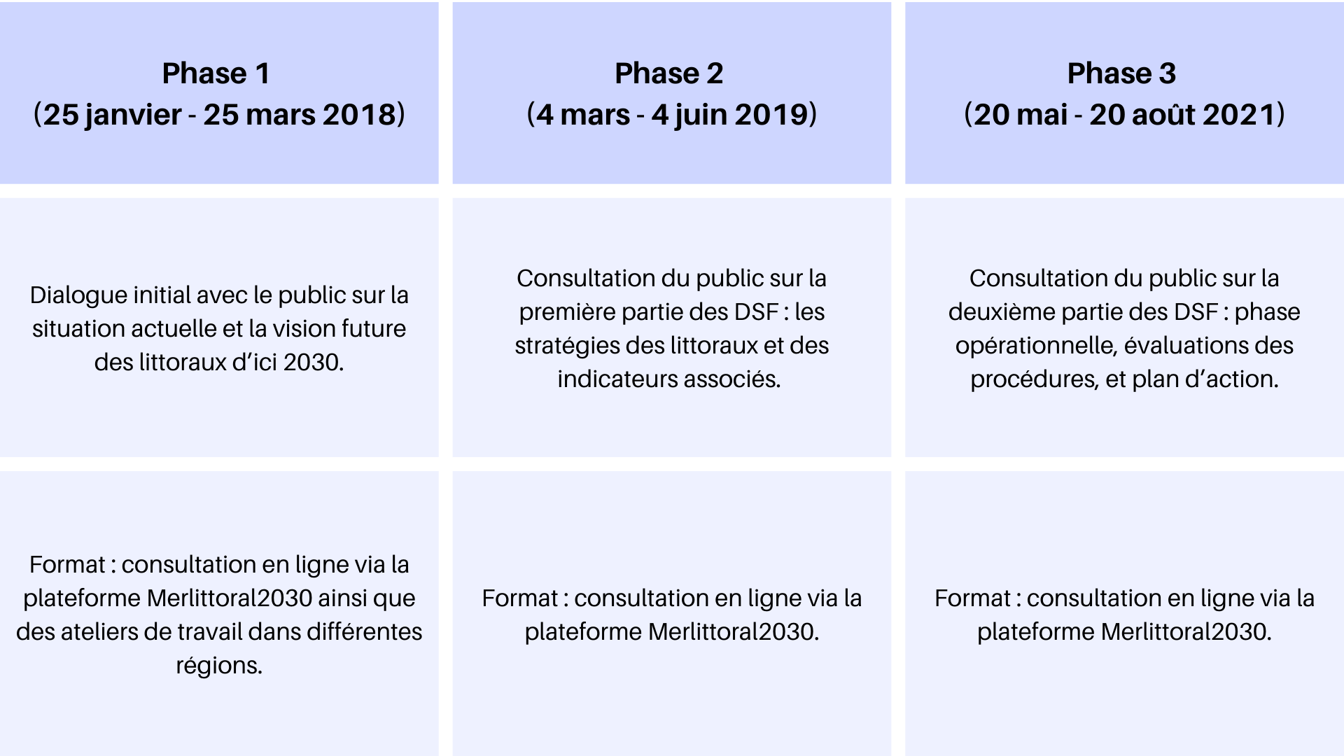 Plus particulièrement, la consultation auprès du grand public s’est déroulée en trois phases distinctes :
