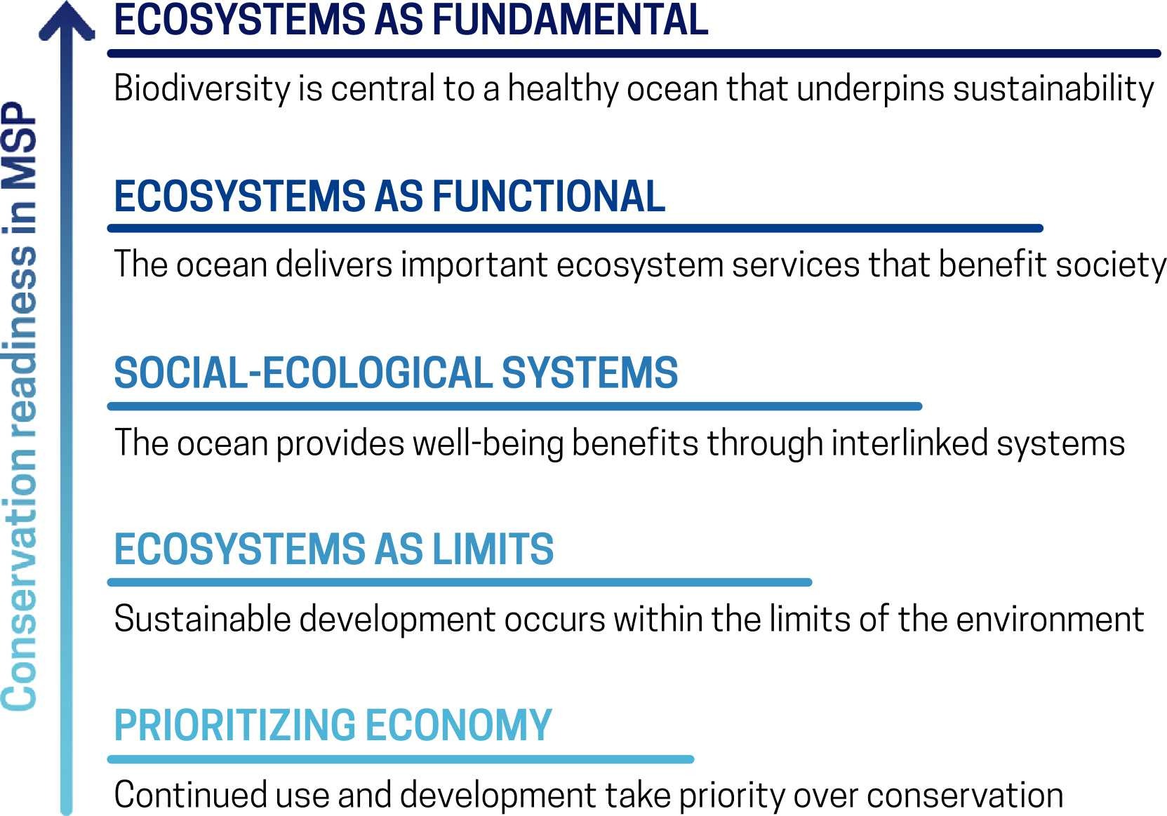 Their analysis revealed that some marine spatial plans appear more prepared to integrate conservation than others – especially those that viewed ecosystems as fundamental or functional for sustainable ocean use (see figure 1). With this approach, they could understand more inductively how conservation has been included in marine spatial planning initiatives. This gave them a new lens for providing recommendations, and the call for conservation ready marine spatial planning.